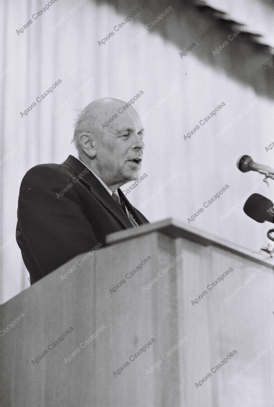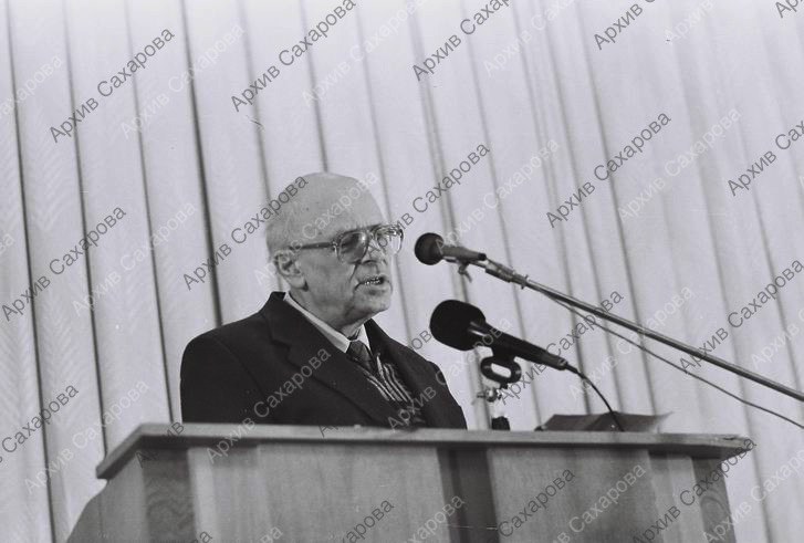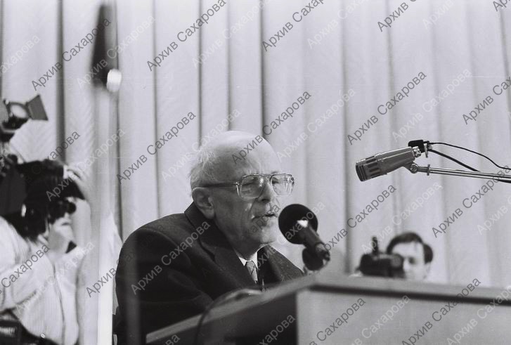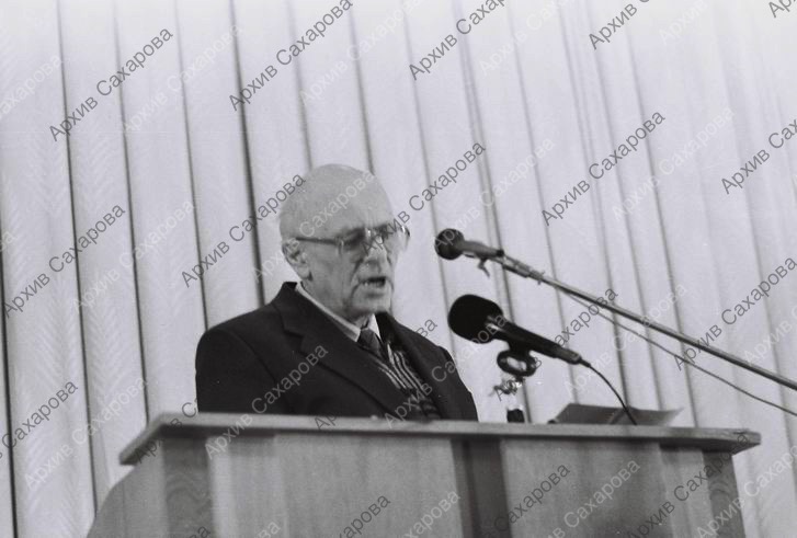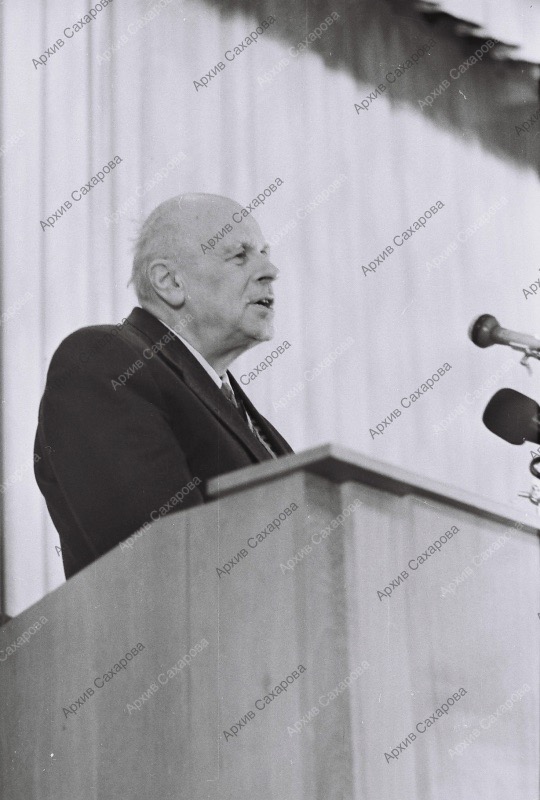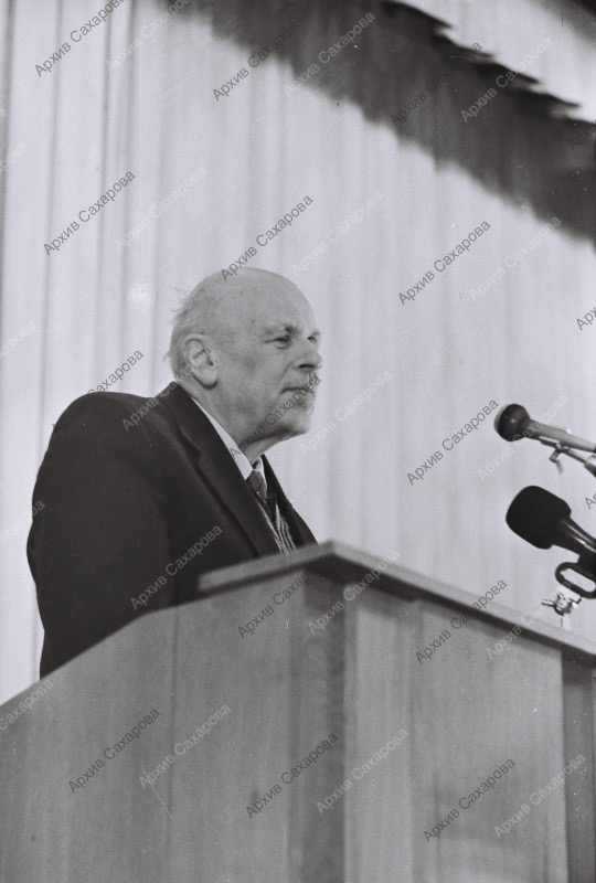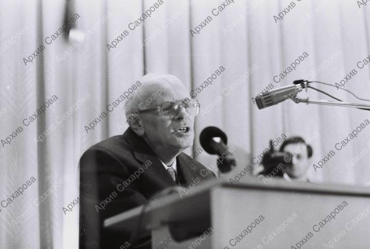 Семь фотографий А.Д.Сахарова во время выступления на предвыборном собрании в ФИАНе