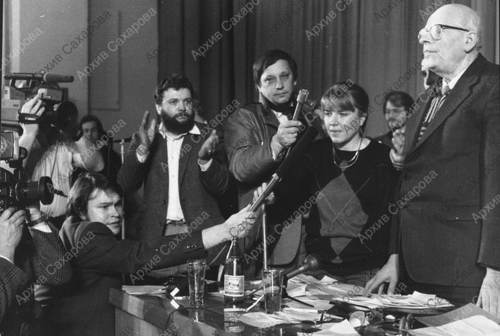 А.Мамонтов - первый слева с микрофоном в руке, Е.Жемкова - слева от А.Сахарова