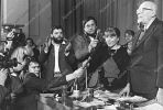 Фотография А.Д.Сахарова на собрании по его выдвижению кандидатом в народные депутаты СССР в Центральном доме кинематографистов, в группе людей