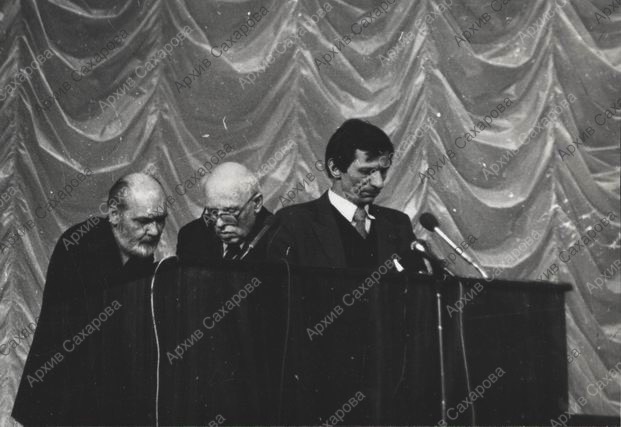 Две фотографии А.Д.Сахарова на Учредительной конференции общества "Мемориал", с Ю.Ф.Карякиным и неизвестным
