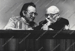 Фотография А.Д.Сахарова и А.М.Адамовича в президиуме Учредительной конференции общества "Мемориал"