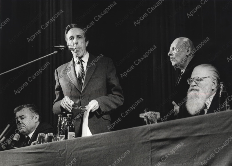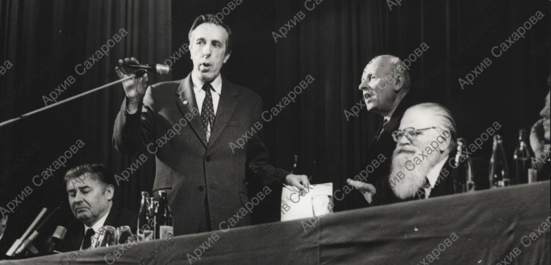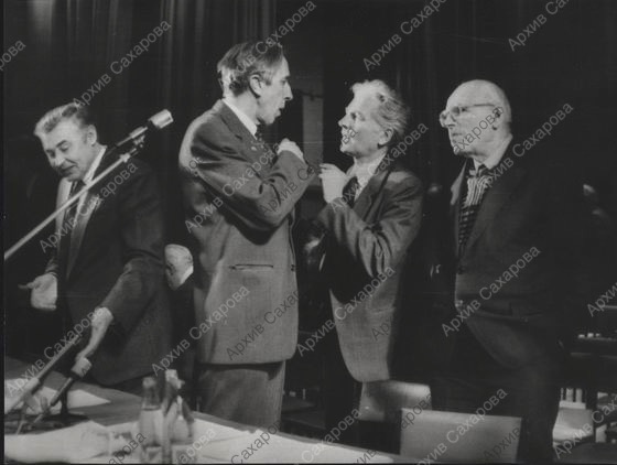 Пять фотографий А.Д.Сахарова во время Пленума АН СССР в Доме ученых, в группах людей