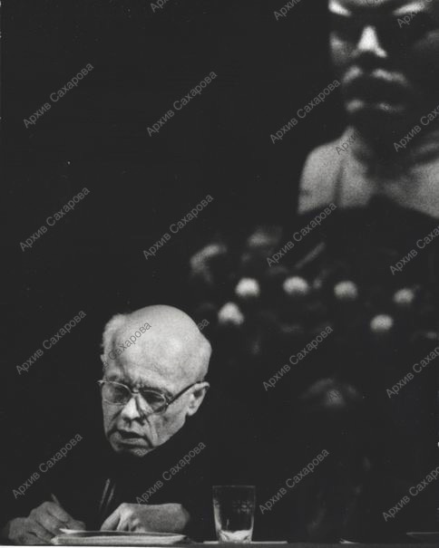Три фотографии А.Д.Сахарова во время работы на Пленуме АН СССР в Доме ученых