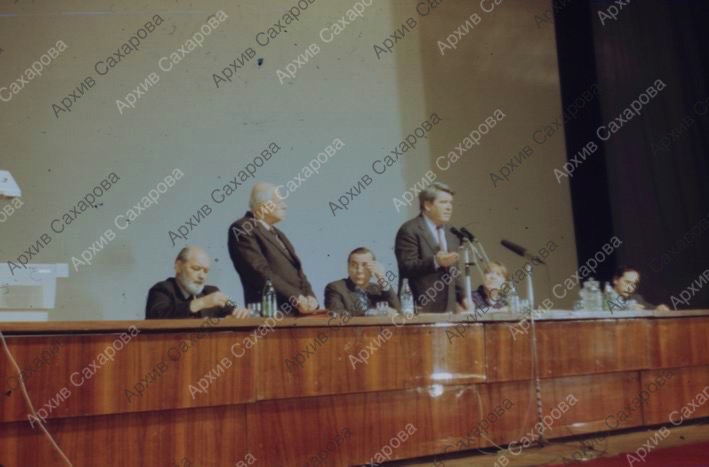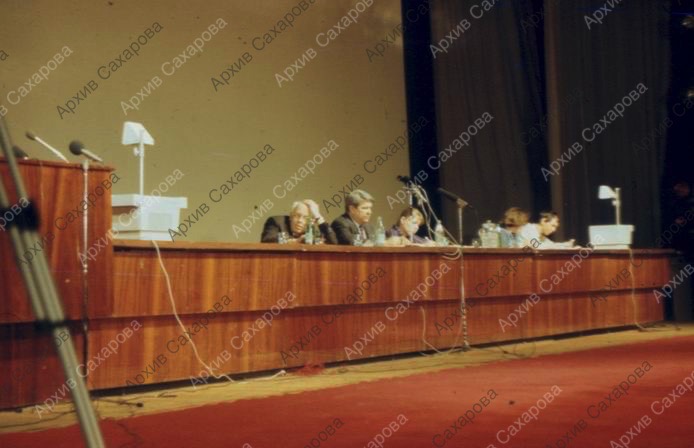 Две фотографии А.Д.Сахарова среди членов президиума на Учредительной конференции общества "Мемориал"