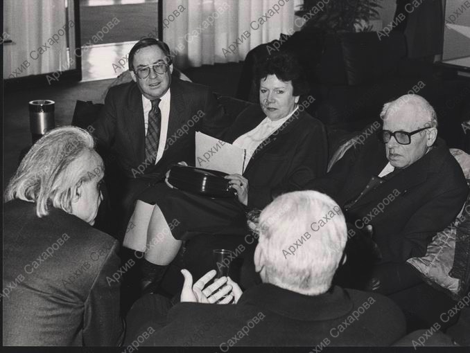 Две фотографии А.Д.Сахарова в Италии, во время беседы с группой людей