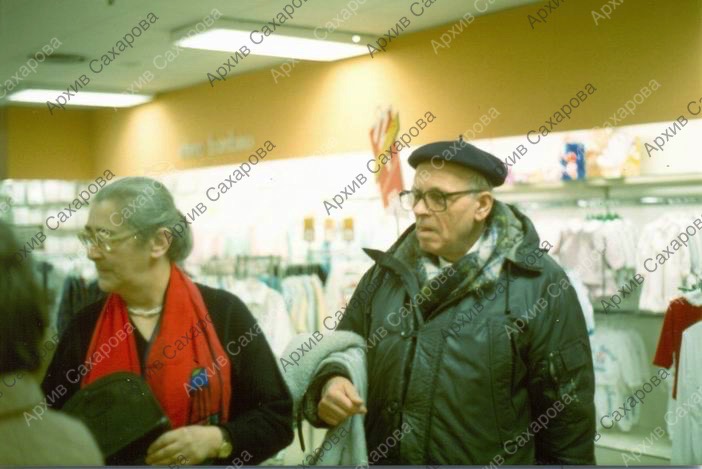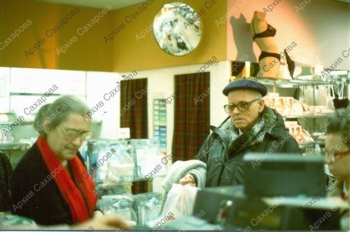 Четыре фотографии А.Д.Сахарова и Е.Г.Боннэр в магазине, во Флоренции