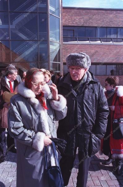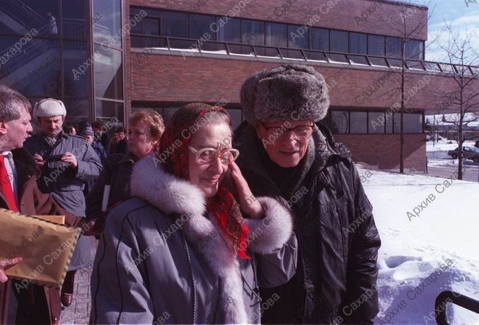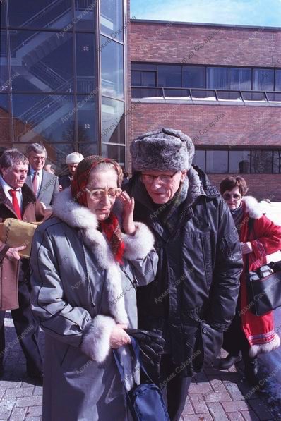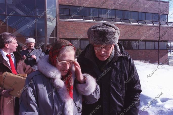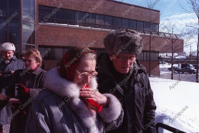 Восемь фотографий А.Д.Сахарова и Е.Г.Боннэр около редакции газеты Ottawa Citizen после ее посещения, в группах людей