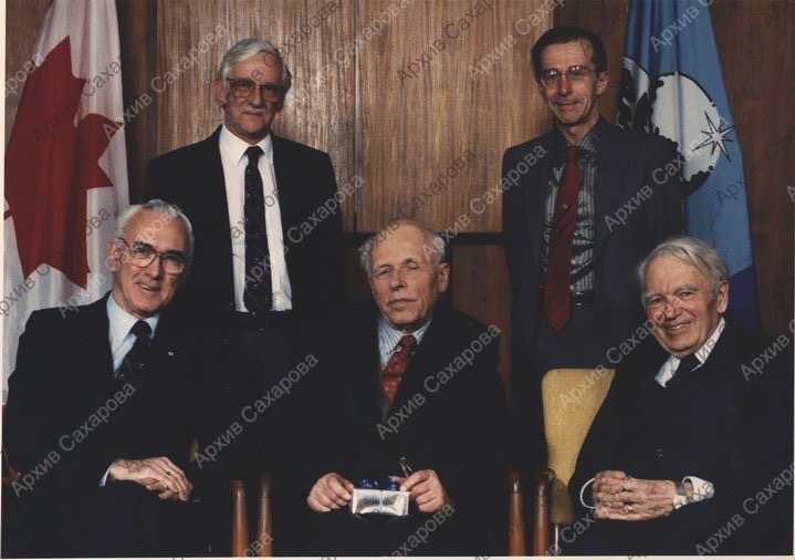 Слева направо: сидят - Kervin, Сахаров, Herzberg; стоят - Gingras, Laubitz