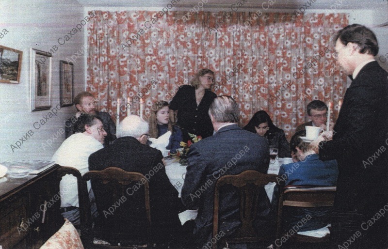 Фотография А.Д.Сахарова во время приема в его честь дома у И.Герола, в группе людей