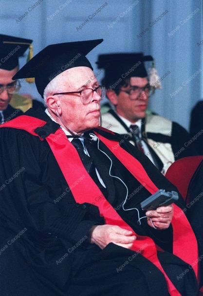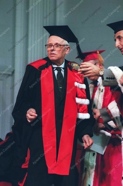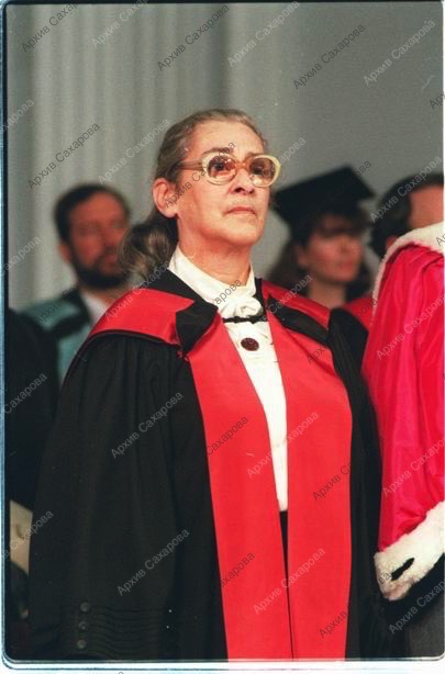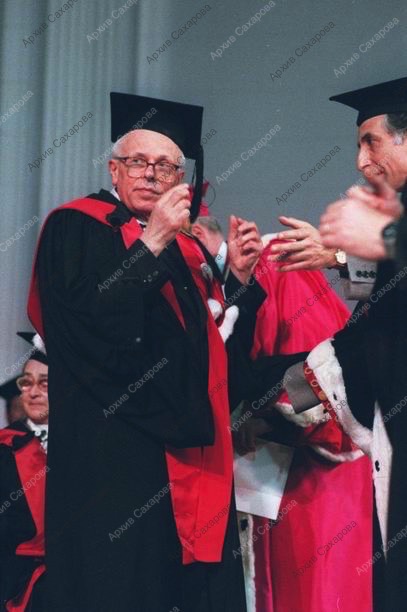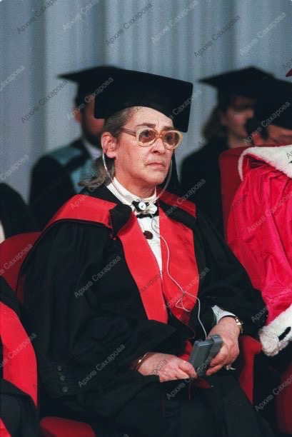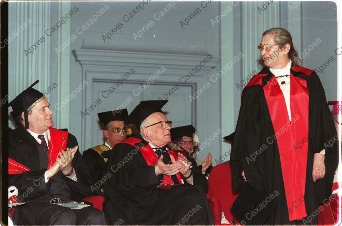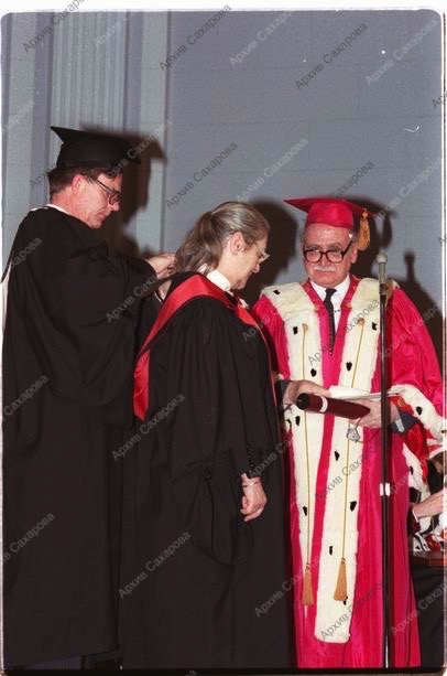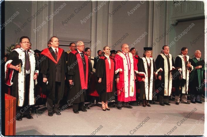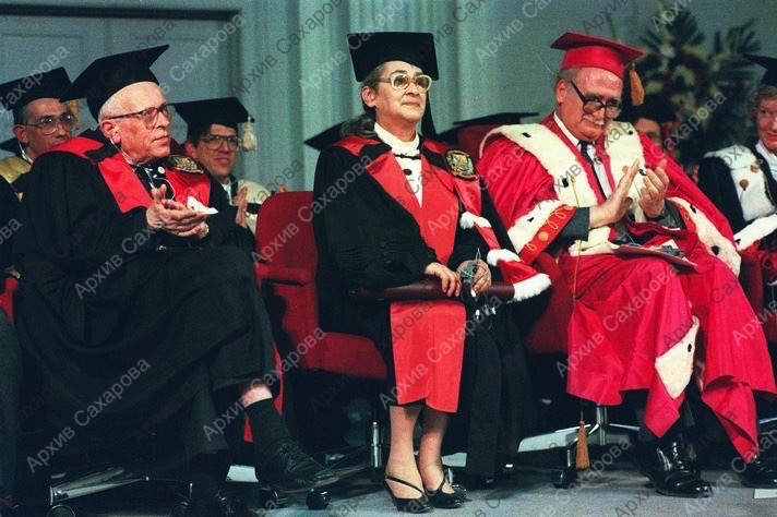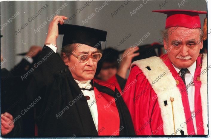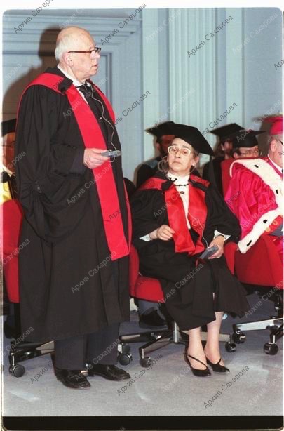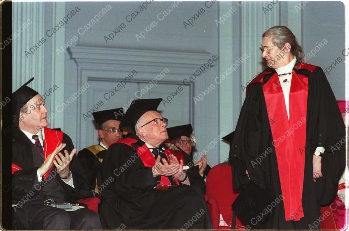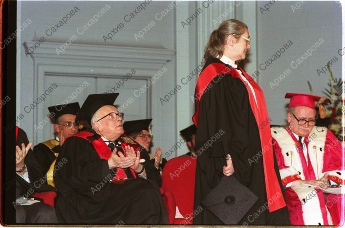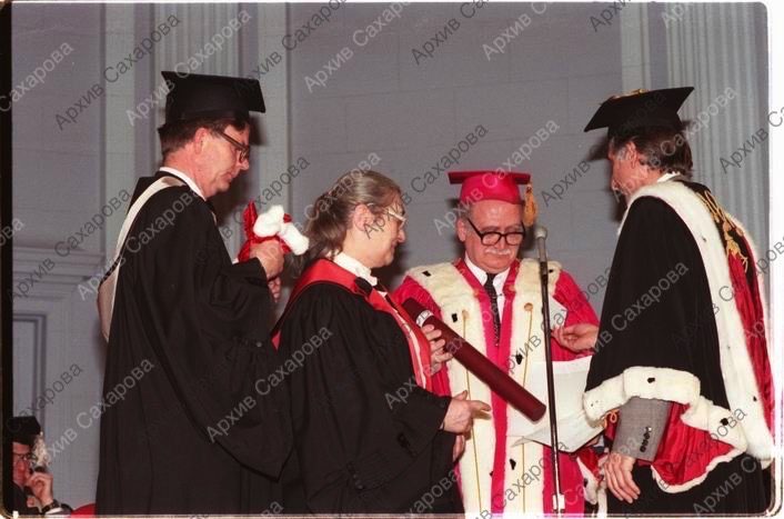Двадцать семь фотографий А.Д.Сахарова и Е.Г.Боннэр в университете Оттавы на церемонии утверждения почетных докторантов и возложении регалий, в группах людей