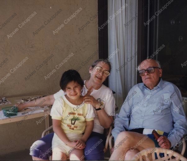 Фотография А.Д.Сахарова с Е.Г.Боннэр и ее внучкой Сашей Семеновой на отдыхе во Флориде
