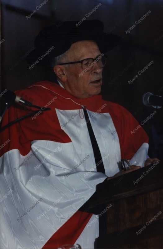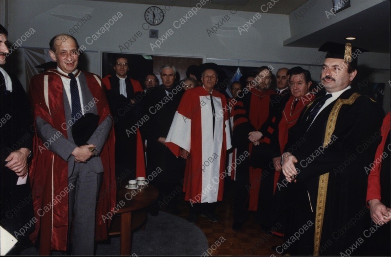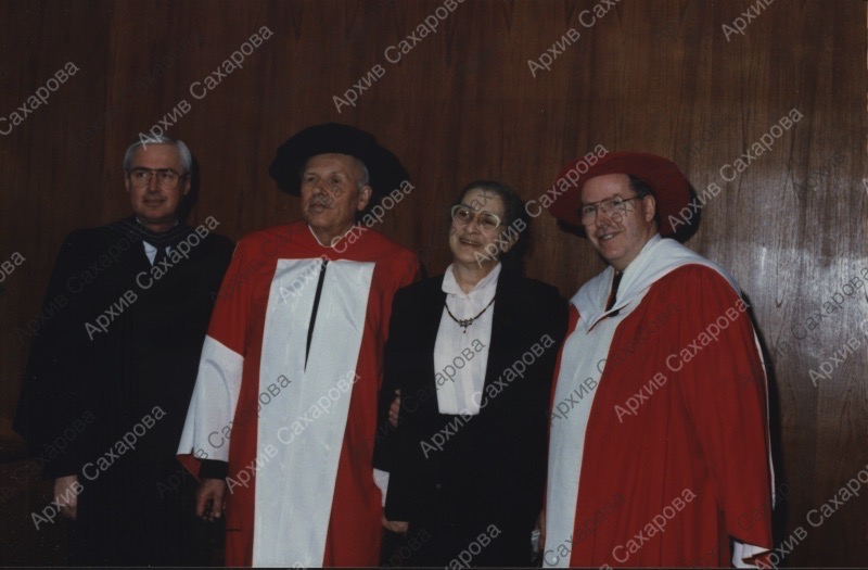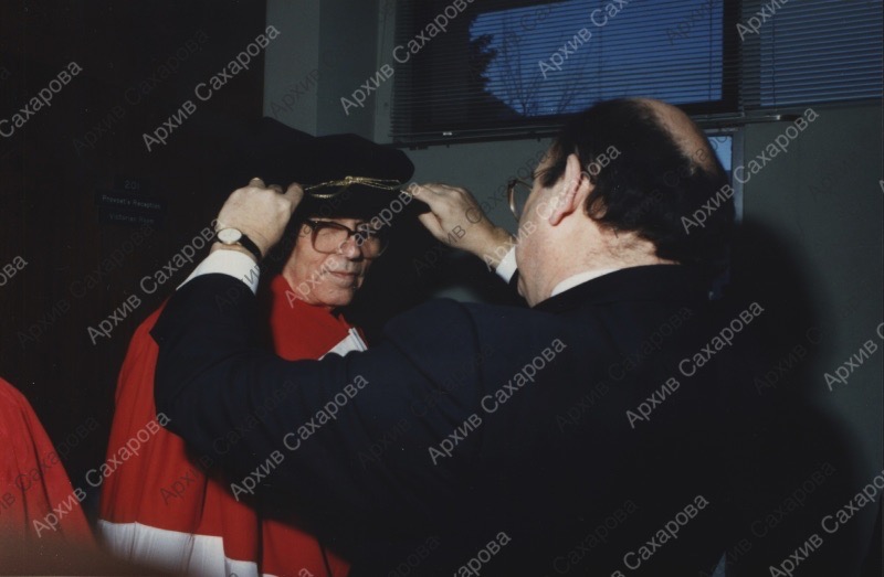 Семь фотографий А.Д.Сахарова и Е.Г.Боннэр во время церемонии присвоения Сахарову почетной степени доктора права университета Манитобы (Канада)