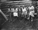 Сидят у стены бревенчатого дома, слева направо: А.Сахаров, А.А.Дометти, ее приемная мать, З.Е.Софиано, Г.Сахаров, Е.А.Сахарова