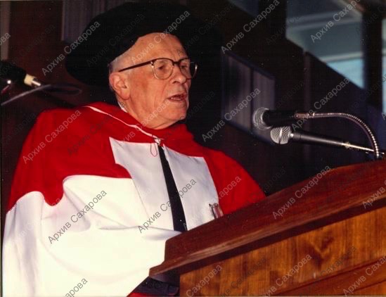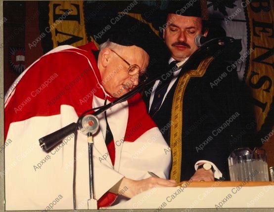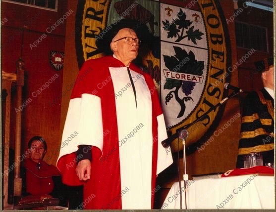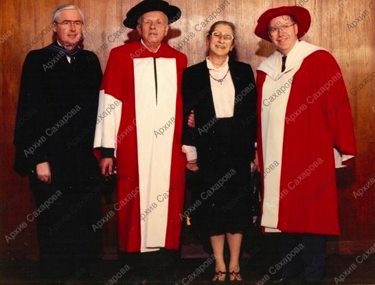 Семь фотографий А.Д.Сахарова и Е.Г.Боннэр во время церемонии присвоения Сахарову почетной степени доктора права университета Манитобы (Канада)