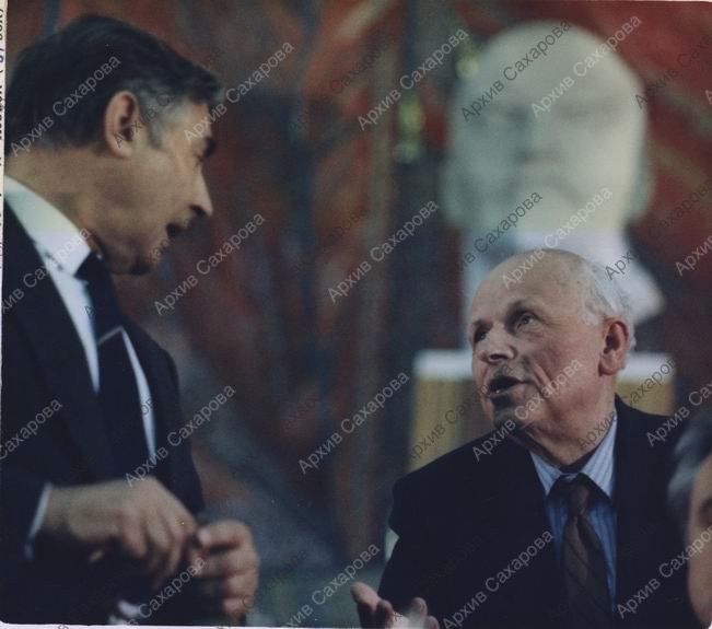 Фотография А.Д.Сахарова с Г.И.Марчуком на конференции Академии наук по выборам народных депутатов от АН СССР