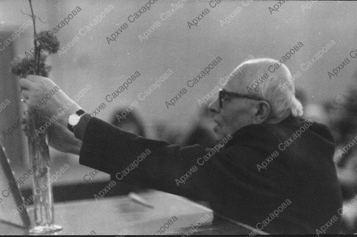 Фотография А.Д.Сахарова в МГПИ на вечере, посвященном 100-летию со дня рождения Д.И.Сахарова