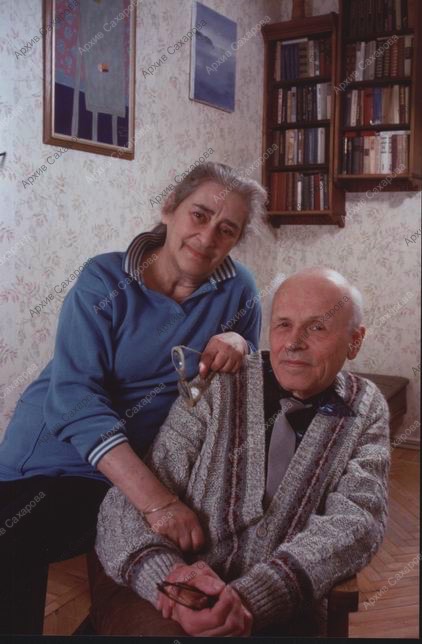 Фотография А.Д.Сахарова с Е.Г.Боннэр дома, в кресле