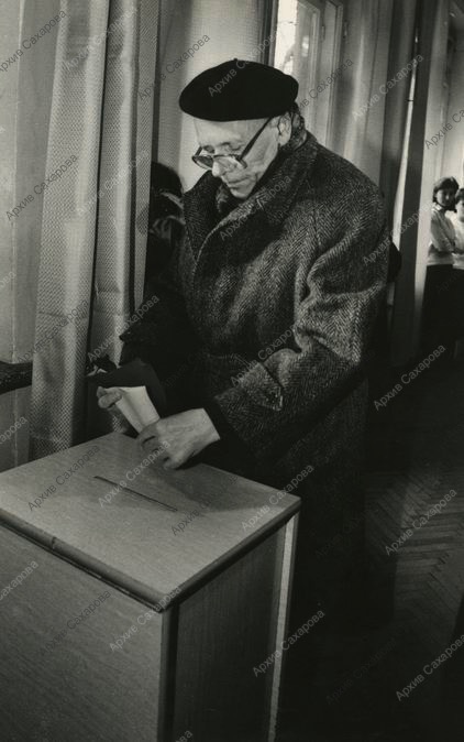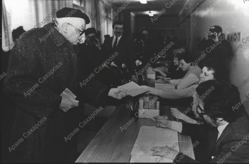 Две фотографии А.Д.Сахарова на избирательном участке в день выборов народных депутатов СССР 1989 года