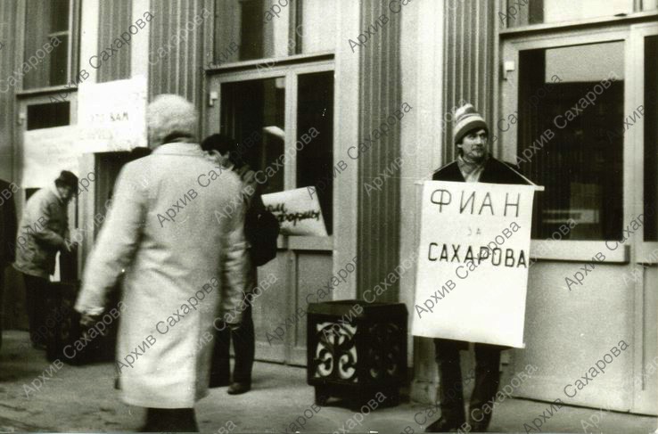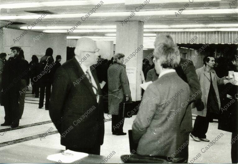 Фотография А.Д.Сахарова в фойе Дворца молодежи на Конференции АН СССР по выборам народных депутатов СССР от Академии наук