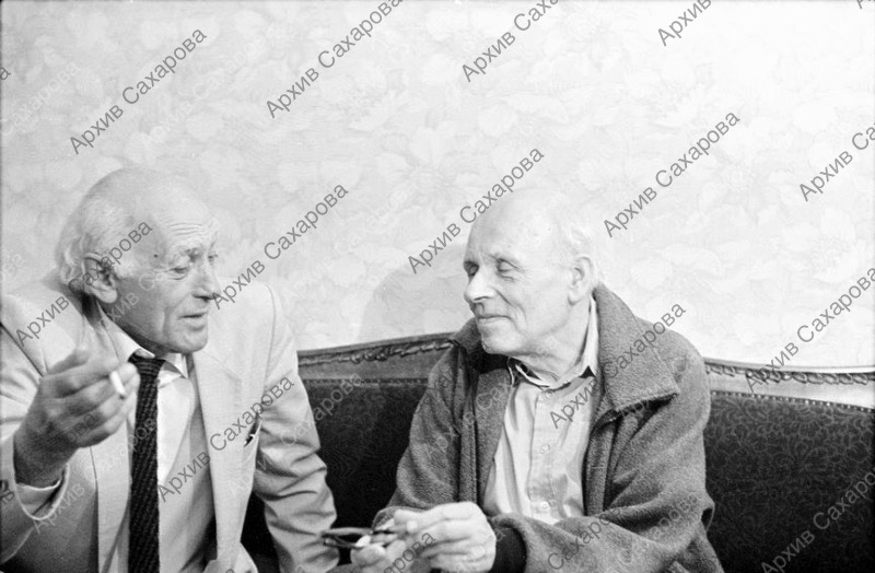 Фотография А.Д.Сахарова с писателем Чабуа Амирэджиби в Тбилиси в номере гостиницы