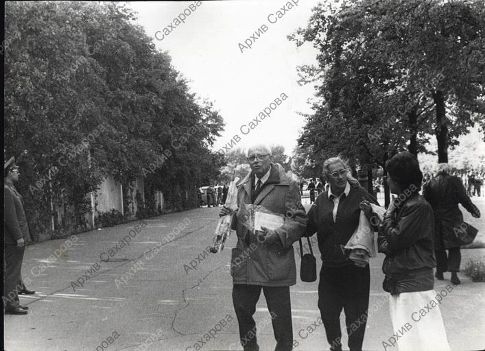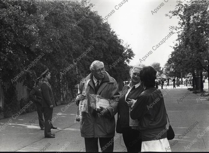 Две фотографии А.Д.Сахарова и Е.Г.Боннэр с неизвестной после митинга в Лужниках 21 мая 1989 г.