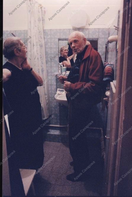 На первом фото Сахаров стоит в коридоре у двери в ванную комнату
