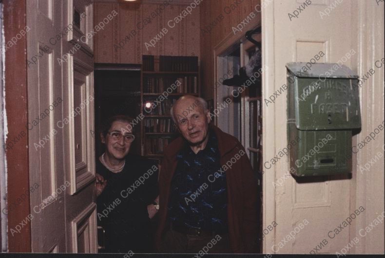 Фотография А.Д.Сахарова и Е.Г.Боннэр на пороге своей квартиры