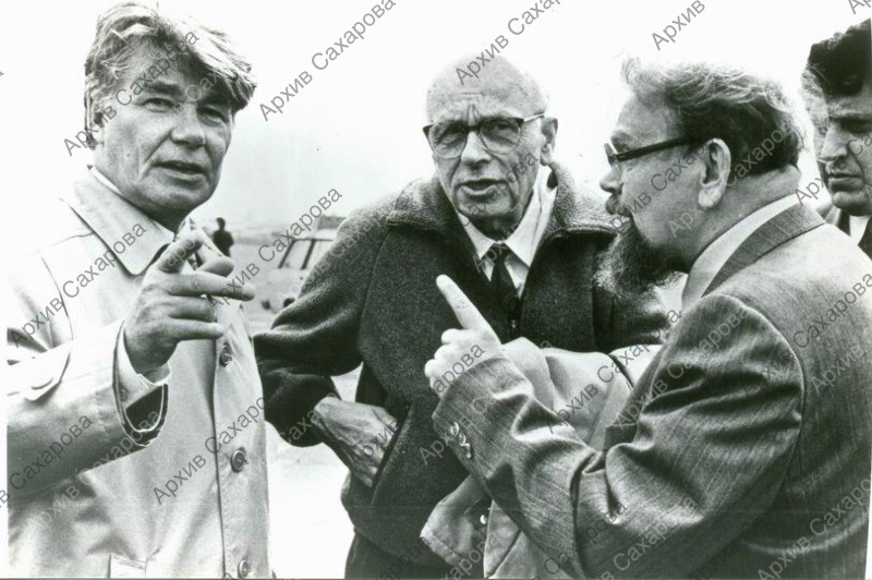 Слева направо: неизвестный, А.Д.Сахаров, Р.И.Пименов