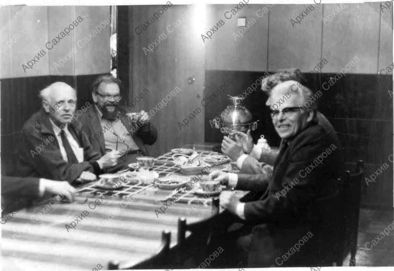 На первом фото Р.Пименов сидит рядом с Сахаровым; на втором и третьем справа налево: Р.Пименов, Сахаров, неизвестный, В.Пименова