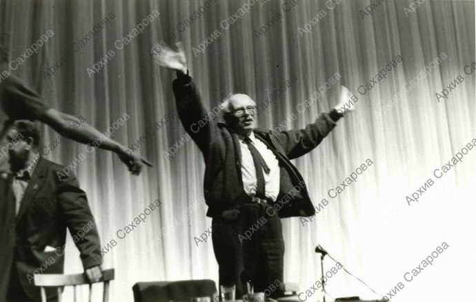 Две фотографии А.Д.Сахарова в Сыктывкаре во время выступлений в поддержку Р.И.Пименова на выборах народных депутатов СССР