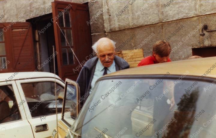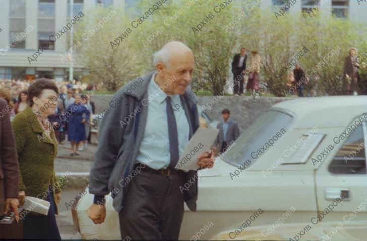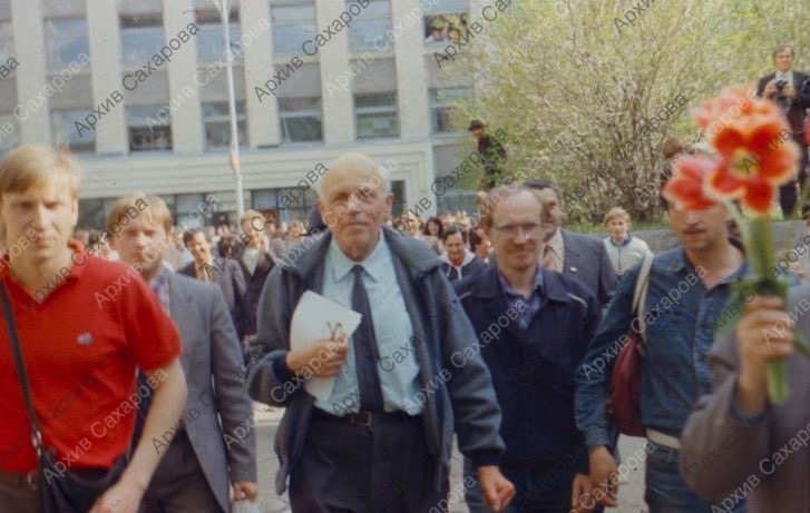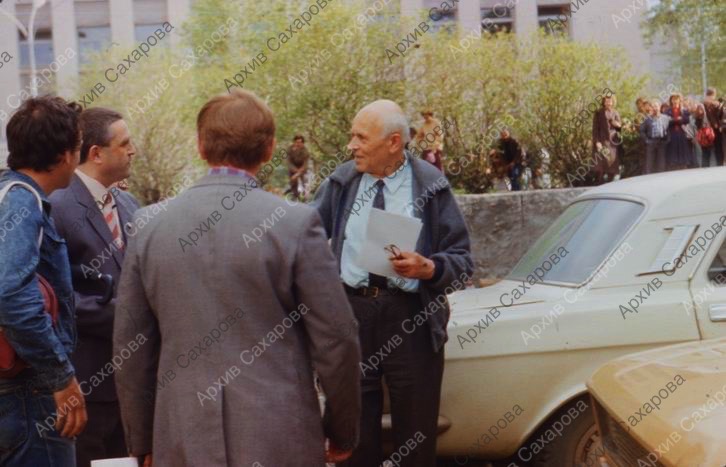 Пять фотографии А.Д.Сахарова во время поездки в Сыктывкар для поддержки Р.И.Пименова на выборах народных депутатов СССР, в группах людей