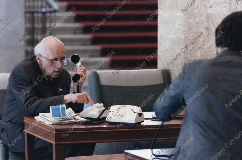 Фотография А.Д.Сахарова в Кремлевском Дворце съездов в перерыве I Съезда народных депутатов СССР