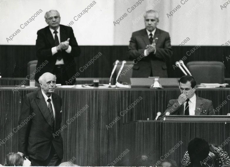 Фотография А.Д.Сахарова и С.В.Червонопиского во время их дискуссии на I Съезде народных депутатов СССР