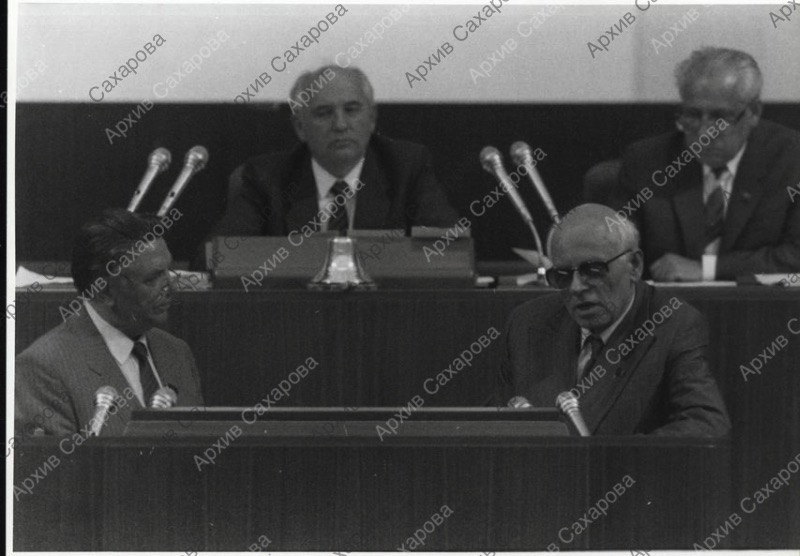 Фотография А.Д.Сахарова и А.Я.Сухарева на трибуне I Съезда народных депутатов СССР во время ответов Сухарева на вопросы Сахарова