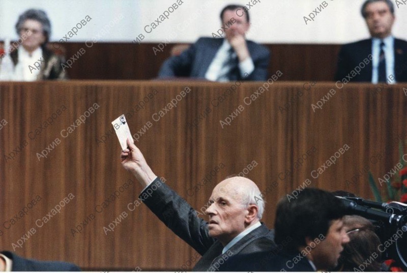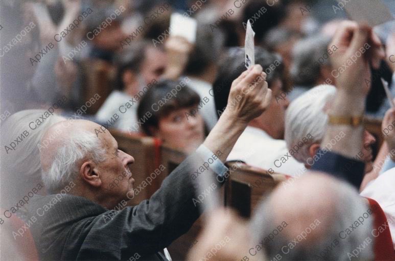 Две фотографии А.Д.Сахарова в последний день I Съезда народных депутатов СССР, в зале заседаний