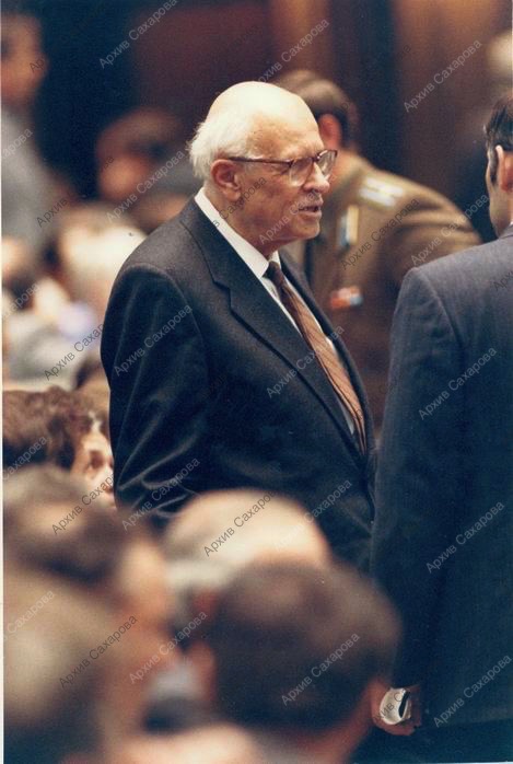 Фотография А.Д.Сахарова в зале в перерыве между заседаниями Съезда народных депутатов СССР