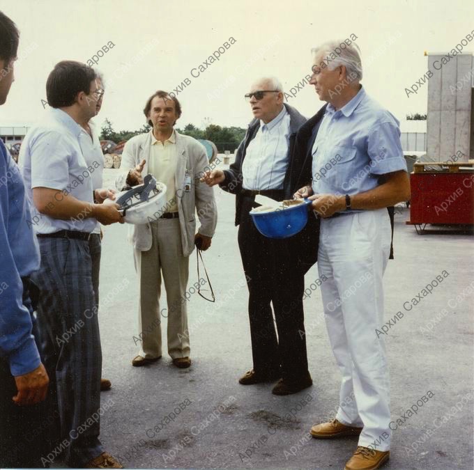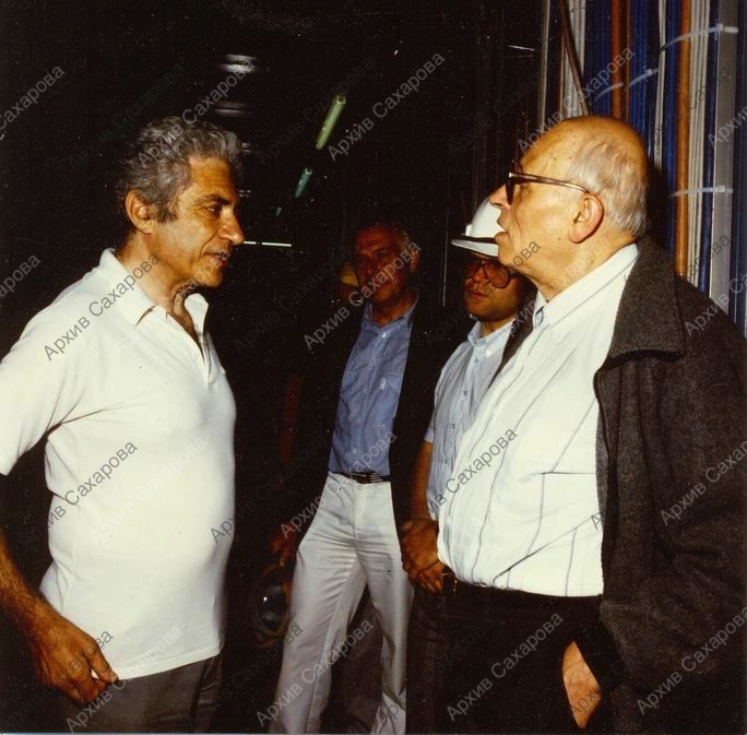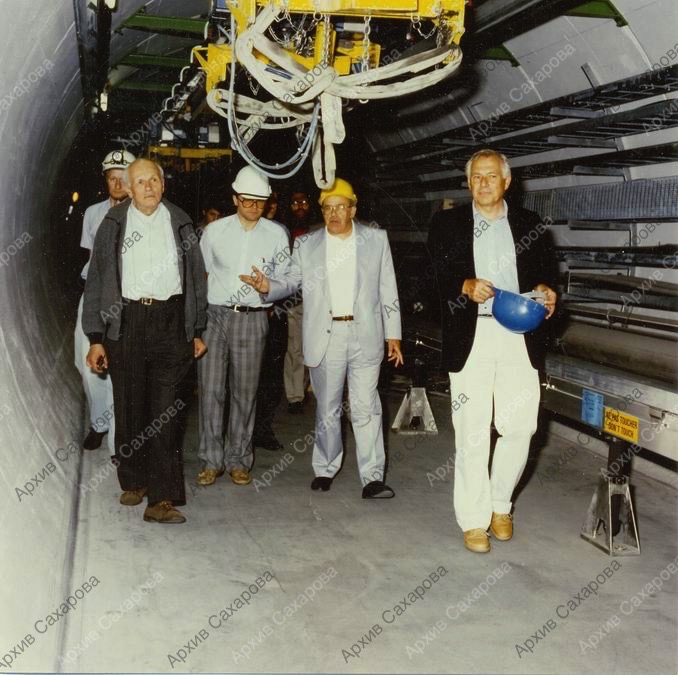 Двадцать фотографий А.Д.Сахарова и Е.Г.Боннэр во время посещения Европейского центра ядерных исследований (ЦЕРН) и осмотра ускорителя, с Карло Руббиа и содтрудниками ЦЕРНа