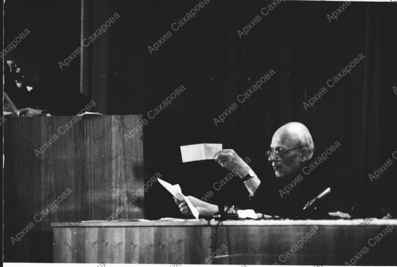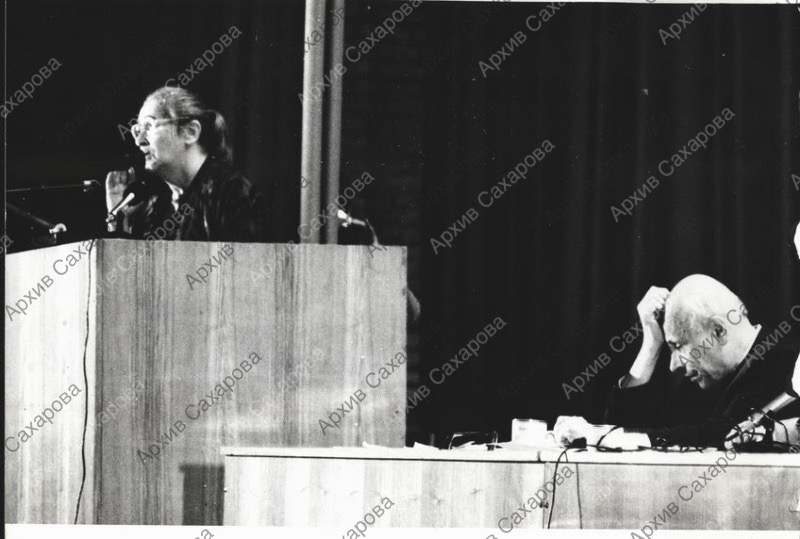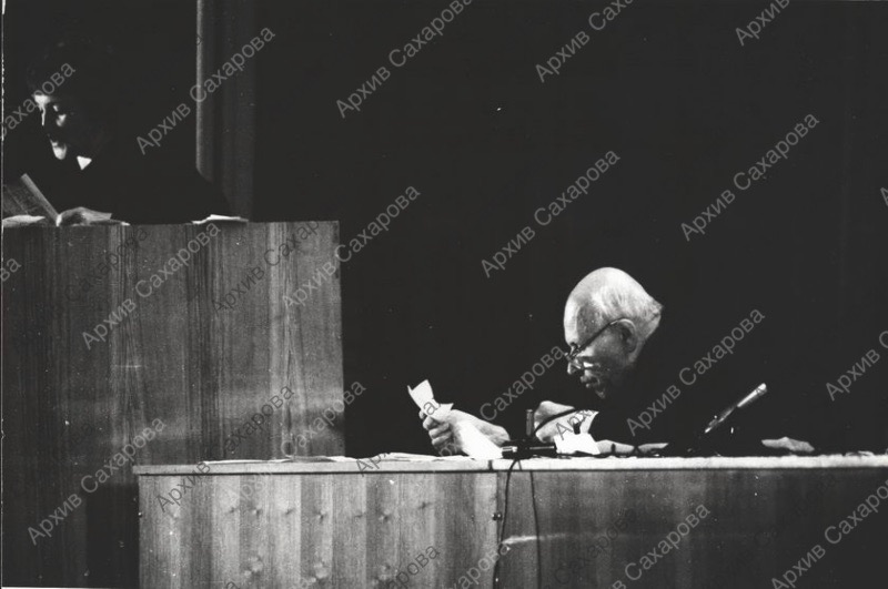 Пять фотографий А.Д.Сахарова во время выступлений Е.Г.Боннэр и Г.В.Старовойтовой перед челябинцами в Доме политпросвещения Челябинского обкома КПСС