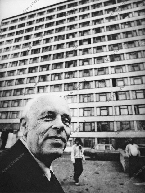 Фотография А.Д.Сахарова в Челябинске около гостиницы "Малахит"