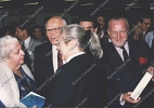 Четыре фотографии А.Д.Сахарова и Е.Г.Боннэр в университете Клода Бернара (Лион) в день вручения Сахарову знаков отличия степени доктора honoris causa, в группах людей