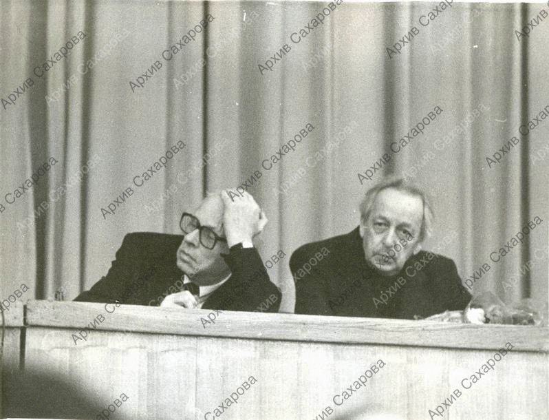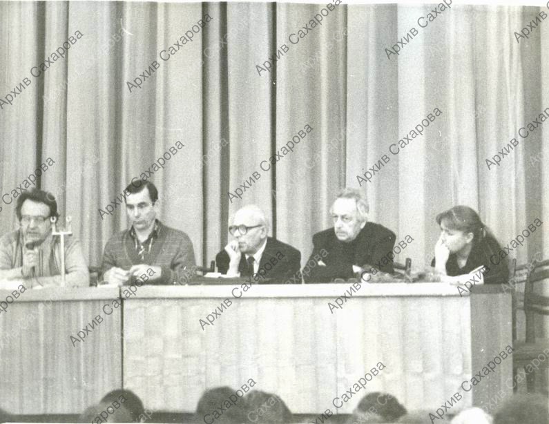 Четыре фотографии А.Д.Сахарова с Л.Э.Разгоном и другими в президиуме Всесоюзного пленума общества "Мемориал"