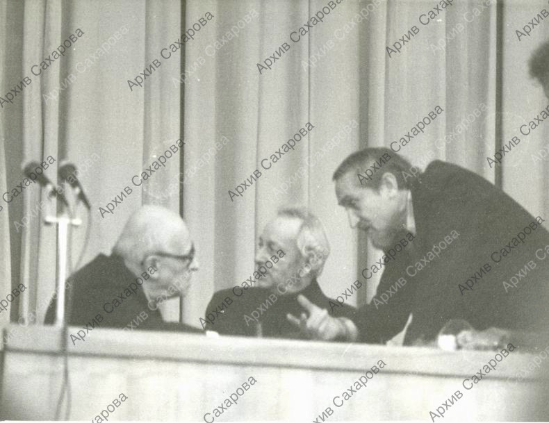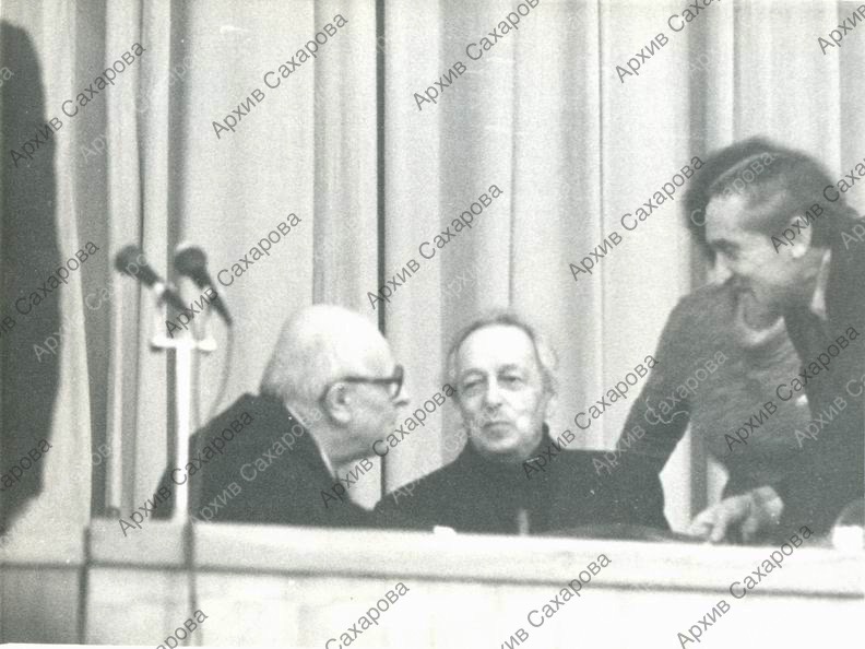 Слева направо: первое фото - А.Адамович, Л.Пономарев, А.Сахаров, Л.Разгон; остальные фото - А.Сахаров, Л.Разгон и (третье и четвертое фото) неизвестный