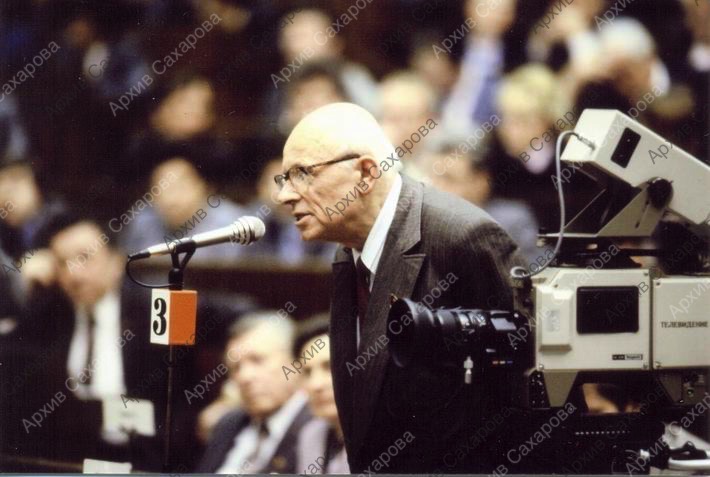Фотография А.Д.Сахарова во время выступления из зала на второй сессии Верховного совета СССР