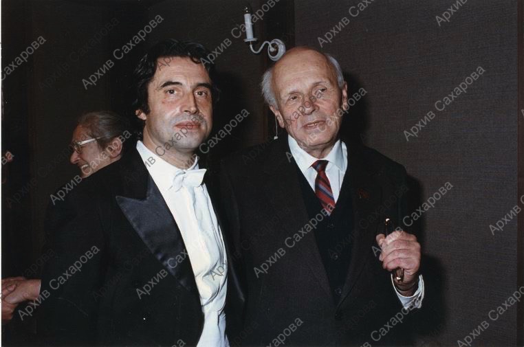 Фотография А.Д.Сахарова с итальянским дирижером Риккардо Мути после его концерта в Большом зале Московской консерватории