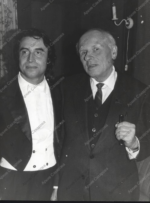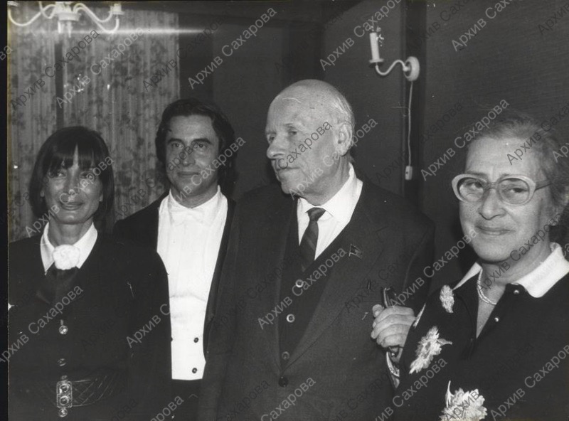 Две фотографии А.Д.Сахарова и Е.Г.Боннэр с итальянским дирижером Риккардо Мути после его концерта в Большом зале Московской консерватории