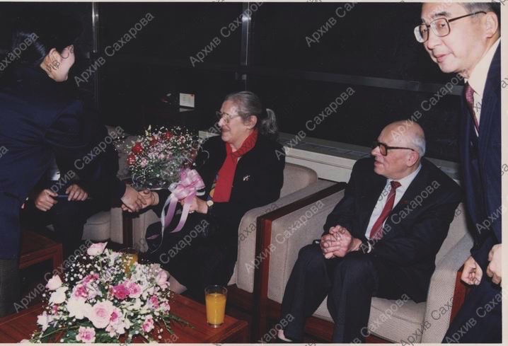 Три фотографии А.Д.Сахарова и Е.Г.Боннэр после прилета в Токио