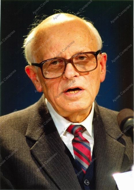 Фотография А.Д.Сахарова во время выступления на Втором форуме нобелевских лауреатов в Японии