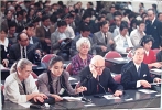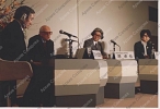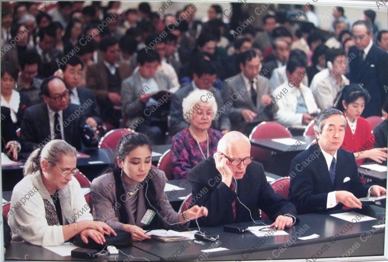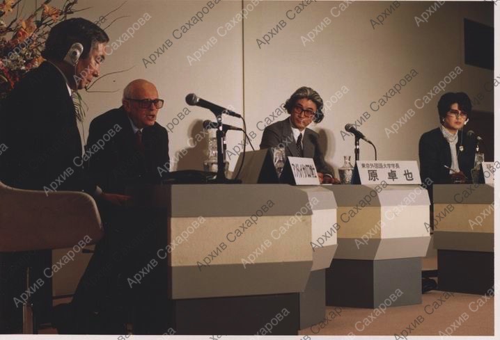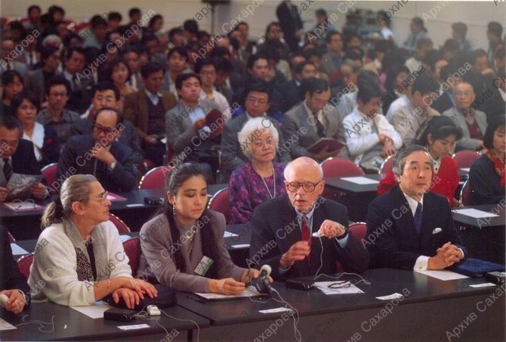Три фотографии А.Д.Сахарова и Е.Г.Боннэр во время участия в одной из секций Второго форума нобелевских лауреатов в Японии