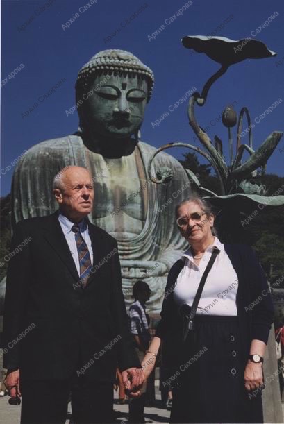 Четыре фотографии А.Д.Сахарова и Е.Г.Боннэр (на одном фото - с Т.Янкелевич) во время посещения Камакуры, древней столицы Японии