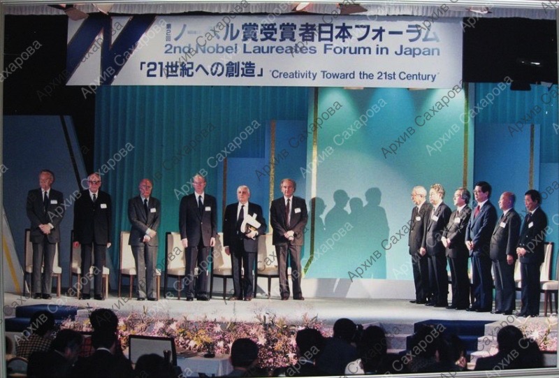 Две фотографии А.Д.Сахарова и других нобелевских лауреатов во время работы Второго форума нобелевских лауреатов в Японии